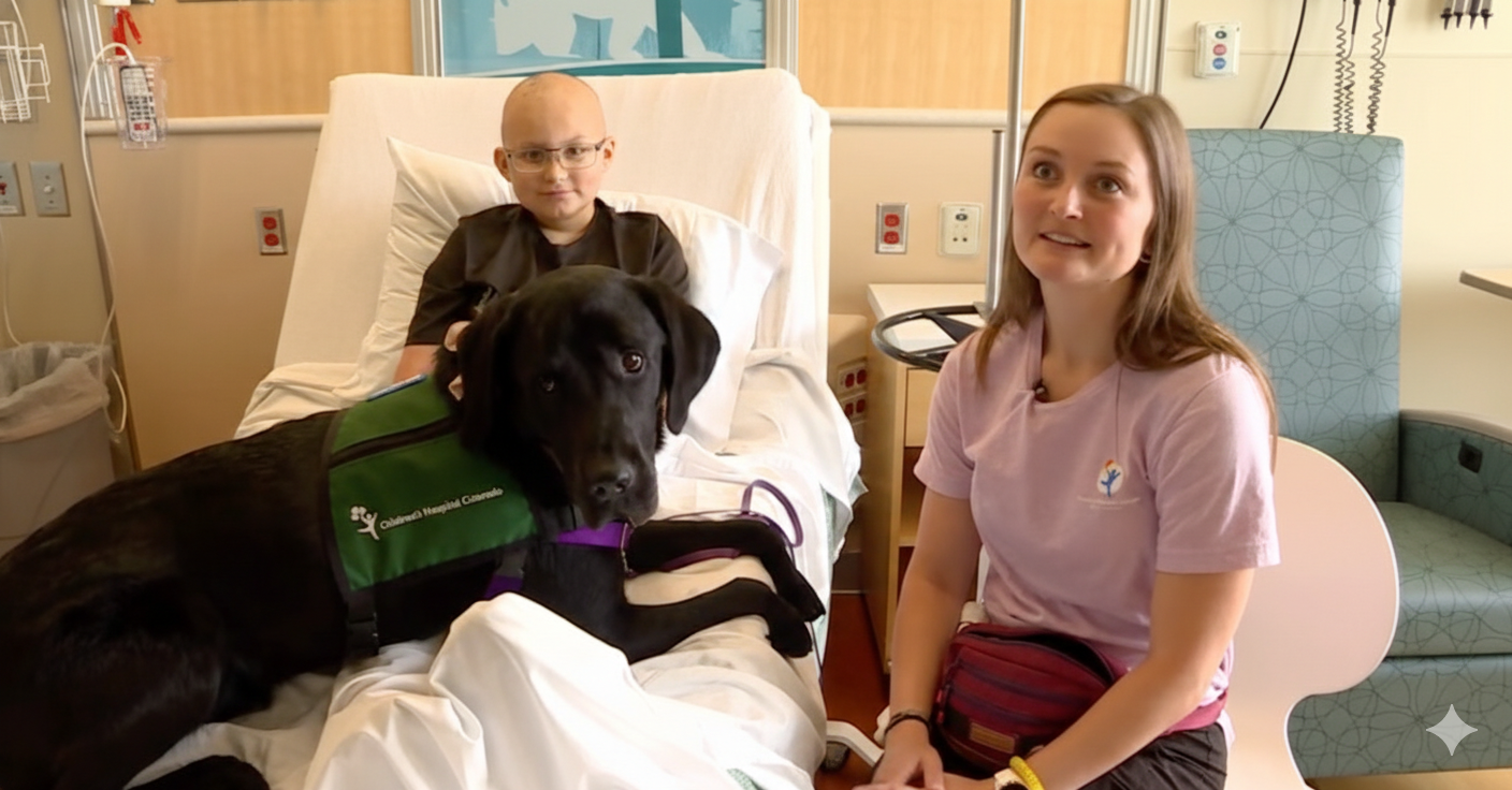 JFG provided a grant to Children’s Hospital Colorado Center for Cancer and Blood Disorders in 2025 to support their medical dog program - in 2024 alone, Children’s Hospital Colorado medical dog handlers completed more than 6,000 patient interventions, bringing comfort, healing and joy to kids and families when they needed it most.